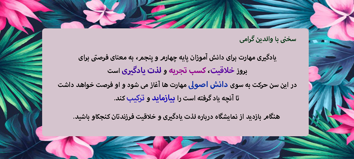 • نمونه کارهای دانش آموزان در پودمان ویترای کتاب