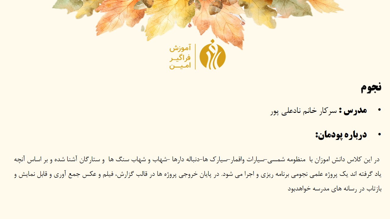 مدرس : سرکار خانم نادعلی پورحد نصاب تشکیل کلاس : حداقل 5 نفر