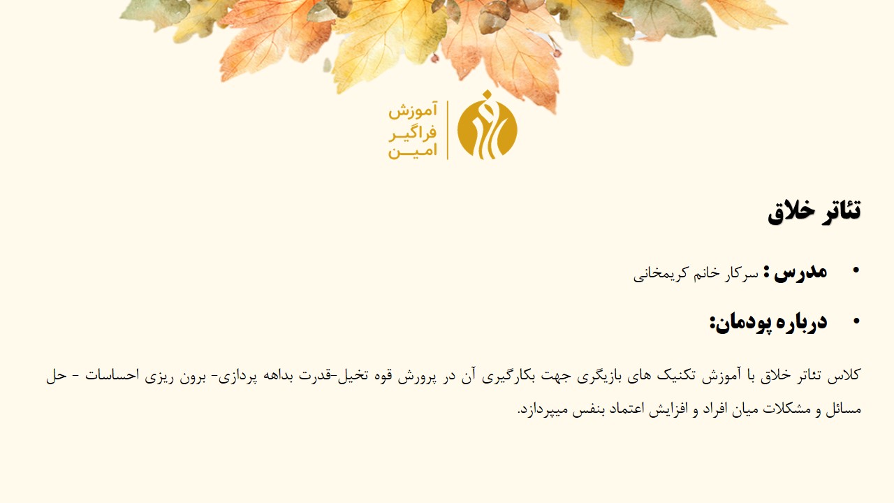 مدرس : سرکار خانم طهورا کریمخانی